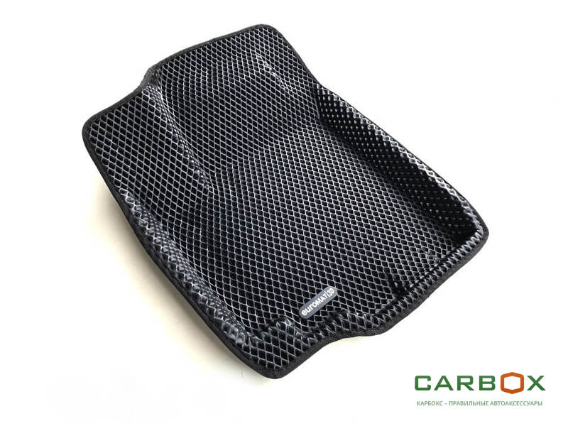В ассортименте Euromat3D новинка - автомобильные коврики из полимерного водостойкого материала EVA. Коврики Евромат EVA производятся с помощью пресс-форм, созданных по 3D модели пола автомобиля, точно повторяют форму салона. Высокий бортик и ромбовидный рисунок позволяет эффективно задерживать в ячейках влагу, песок и мелкий мусор, надежно защищая пол и боковые стенки от загрязнения. В мокрое время года или в снежную зиму вода собирается на дне ячеек и ноги водителя и пассажиров не будут стоять в лужах на поверхности ковра. Используемый в производстве этого вида автоковриков ЭВА полимер - гипоаллергенный безопасный материал, не теряет эластичных свойств при низких или высоких температурах.
